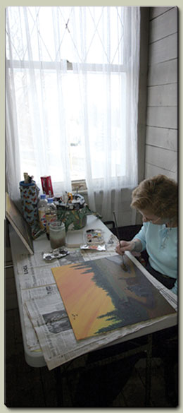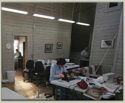 Groups of any kind always enjoy spending time in the third floor studio. This large, open loft has plenty of workspace , natural light and breathtaking views of downtown Mineral Point and the scenery beyond. Within the studio you will find Ott Lite™ overhead lighting, fourteen comfortable & fully adjustable pneumatic chairs and moveable work tables. A restroom, refrigerator, coffee maker and snack area are conveniently located at the studio’s entry.